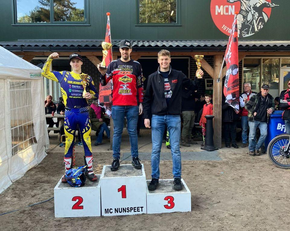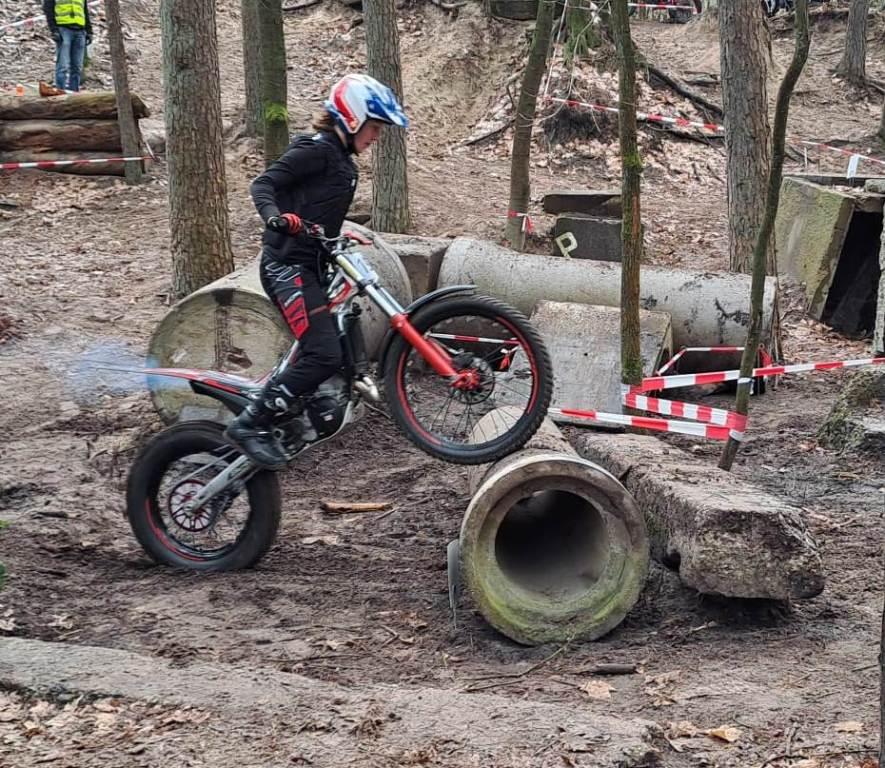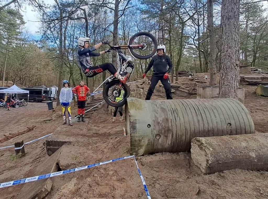probleempje met haar nieuwe trialfiets en kon mede hierdoor niet op het ere
