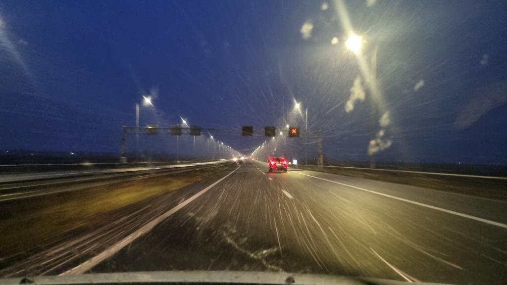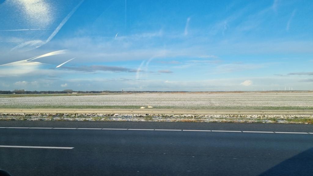Voorbij Amsterdam gekomen begon het daglicht het te winnen van het donker en