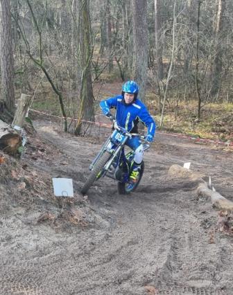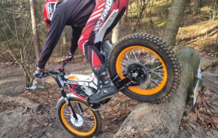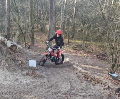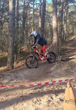 Thijs van Marcel van Tartwijk rijdt op een elektrisch trial brommertje.